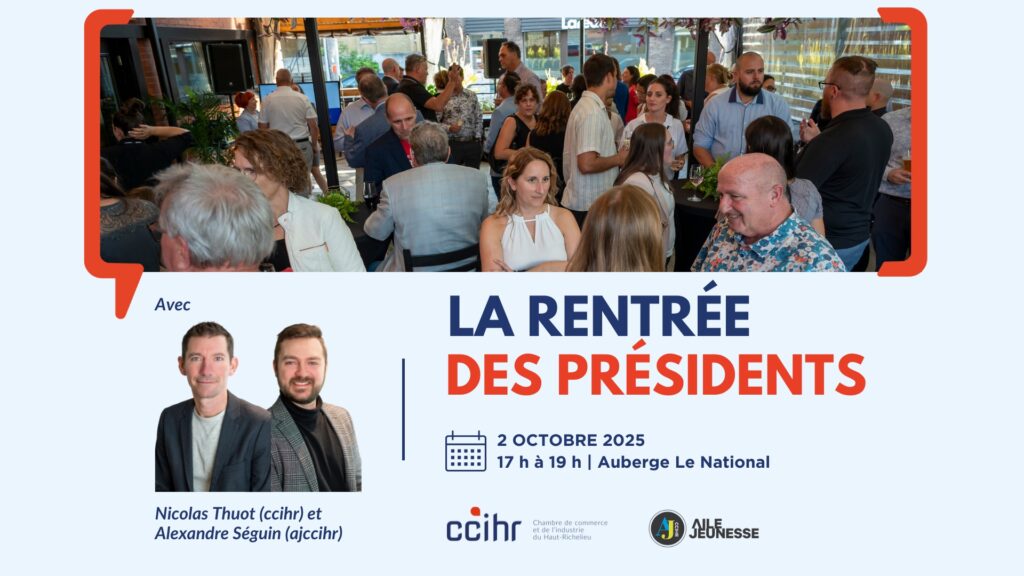 La Chambre de commerce et de l’industrie du Haut-Richelieu organise, tout au long de l’année, des activités de réseautage. Nous offrons des dîners conférences présentant des personnalités régionales et nationales, des 5 à 7 favorisant le réseautage entre membres ainsi qu’une série de formations et de colloque vous permettant de rencontrer les leaders de notre région.