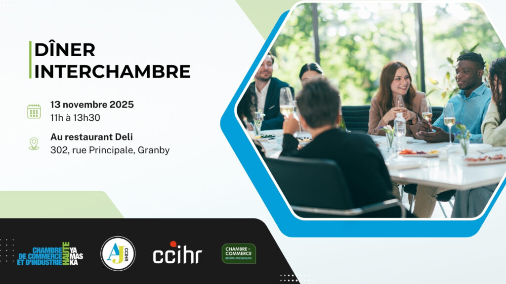 La Chambre de commerce et de l’industrie Haute-Yamaska, en collaboration avec la Chambre de commerce et de l’industrie du Haut-Richelieu et la Chambre de commerce de Brome-Missisquoi, vous invite à un dîner exceptionnel placé sous le signe des rencontres et des échanges.