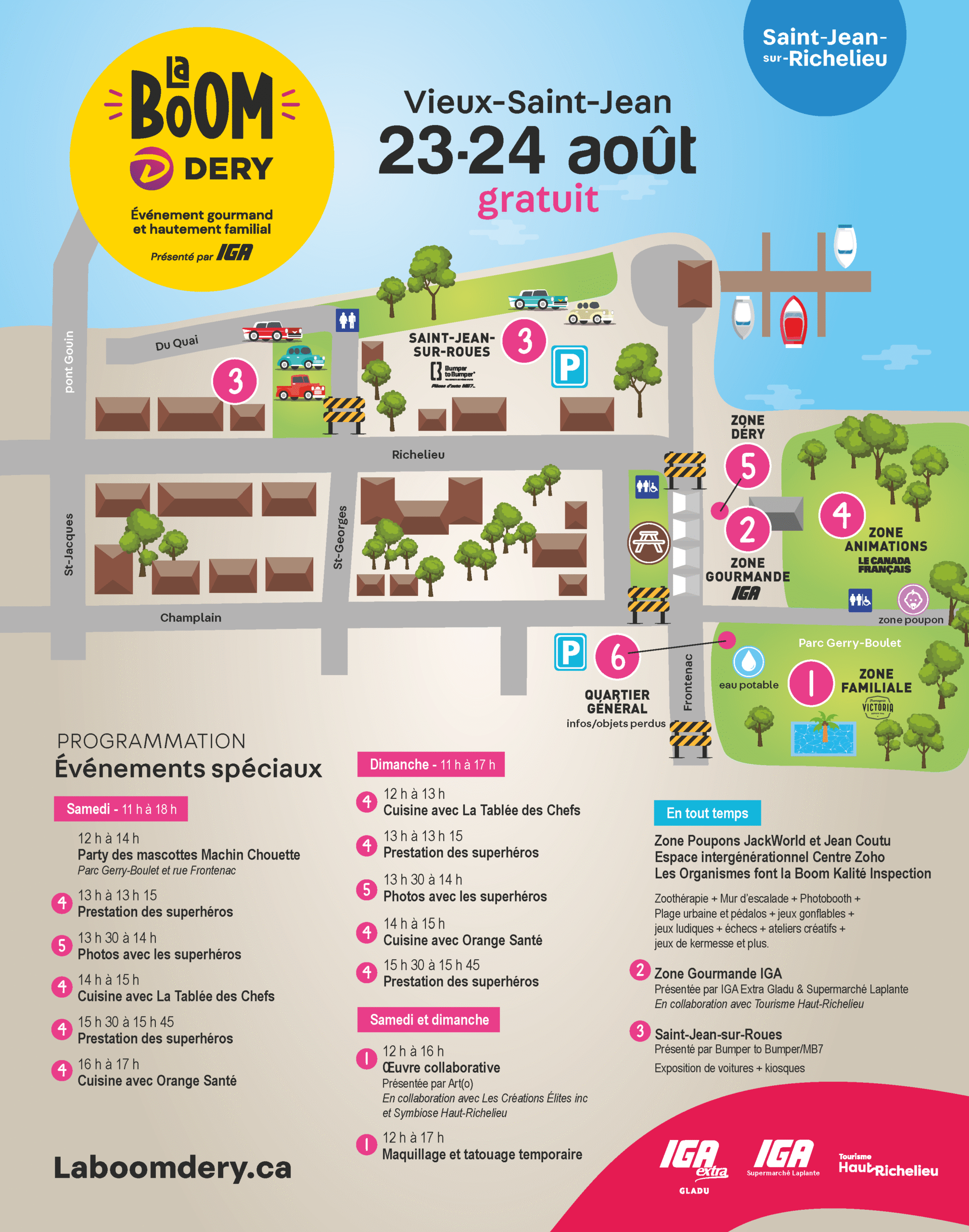 Programmation de la Boom Déry 2025 différentes zones thématiques à Saint-Jean